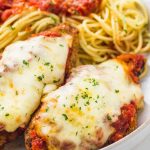 My favorite way to serve chicken parm is with garlic butter pasta as it reminds me of Olive Garden’s chicken parm meal. Or if you have an Instant Pot, then check out this Instant Pot noodle recipe, it’s creamy and made with garlic and parmesan, sooo good!