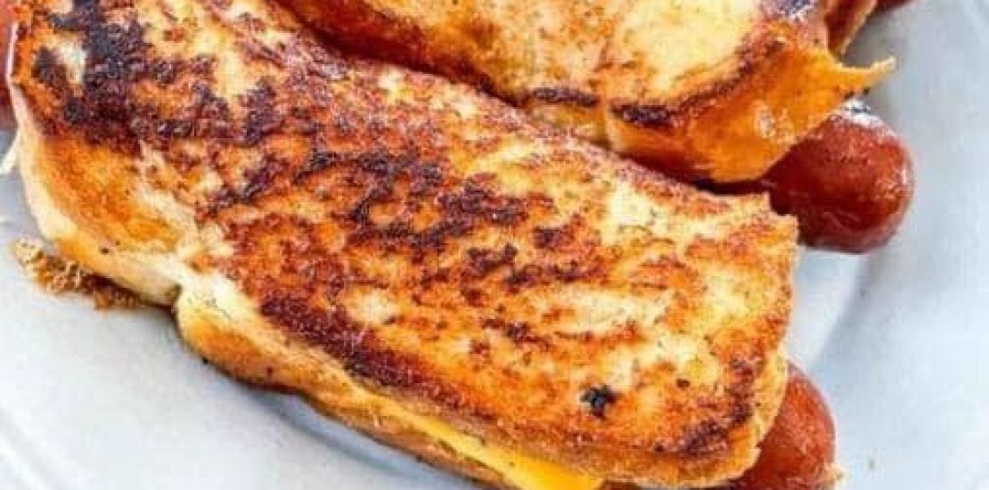 A kid-friendly, budget-friendly, and delicious snack made in the air fryer in less than 5 minutes! These Grilled Cheese Hot Dogs are crispy on the outside, gooey on the inside, and perfect for a quick meal.