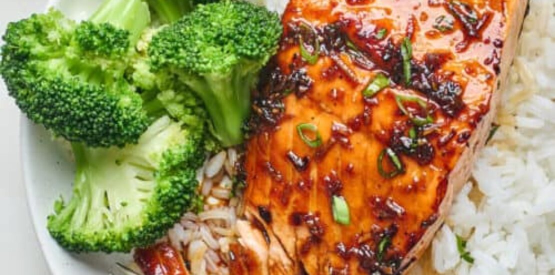 Today we’re making some air fryer honey garlic salmon which cooks in less than 8 minutes and pairs perfectly with air fryer veggies like , zucchini, green beans, asparagus, or brussels sprouts. And you can add a side of rice or quinoa for a balanced meal or protein, veggies and carbs. It’s easy to make and uses basic pantry staples but does not skimp on the flavor.