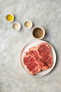 - Pat dry the t-bone steak on both sides with paper towels, rub oil all over the steak and rub the seasoning mixture on all sides.
