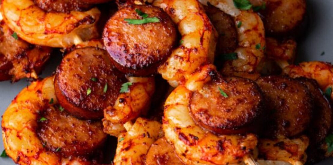 EASY SAUSAGE AND SHRIMP KABOBS AIR FRYER