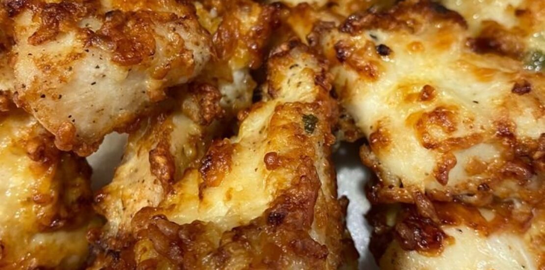 1. Trim the fat from the tenders. Set out three bowls. Fill one with the white flour, about ¼ teaspoon pepper, & about ½ teaspoon salt. Stir. Fill the next bowl with the olive oil or butter and minced garlic. Stir. Place the basil, paprika, Panko, and parmesan cheese in the last. Stir.